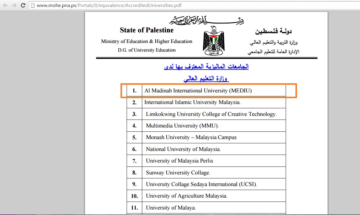 http://www.mohe.pna.ps/Portals/0/equvalence/AccreditedUniversities.pdf