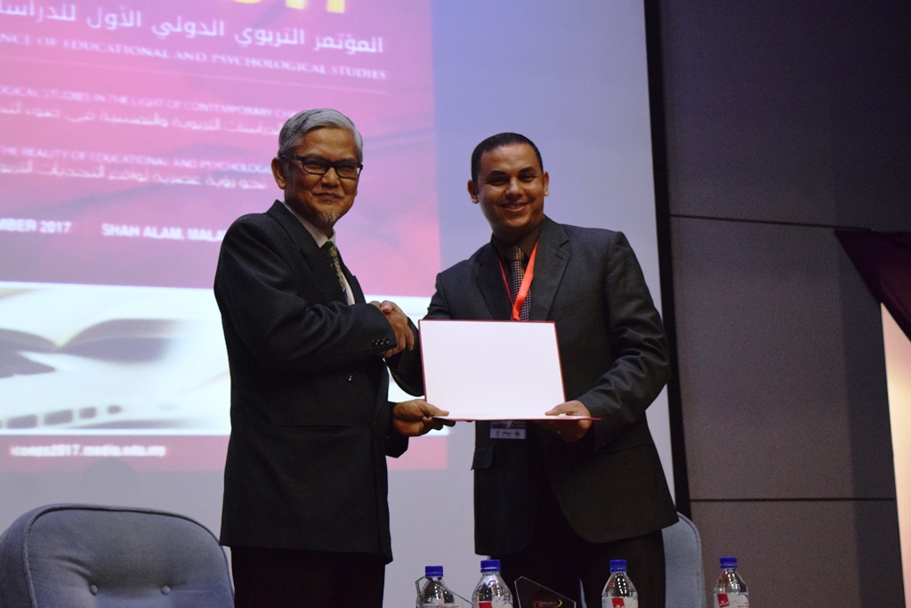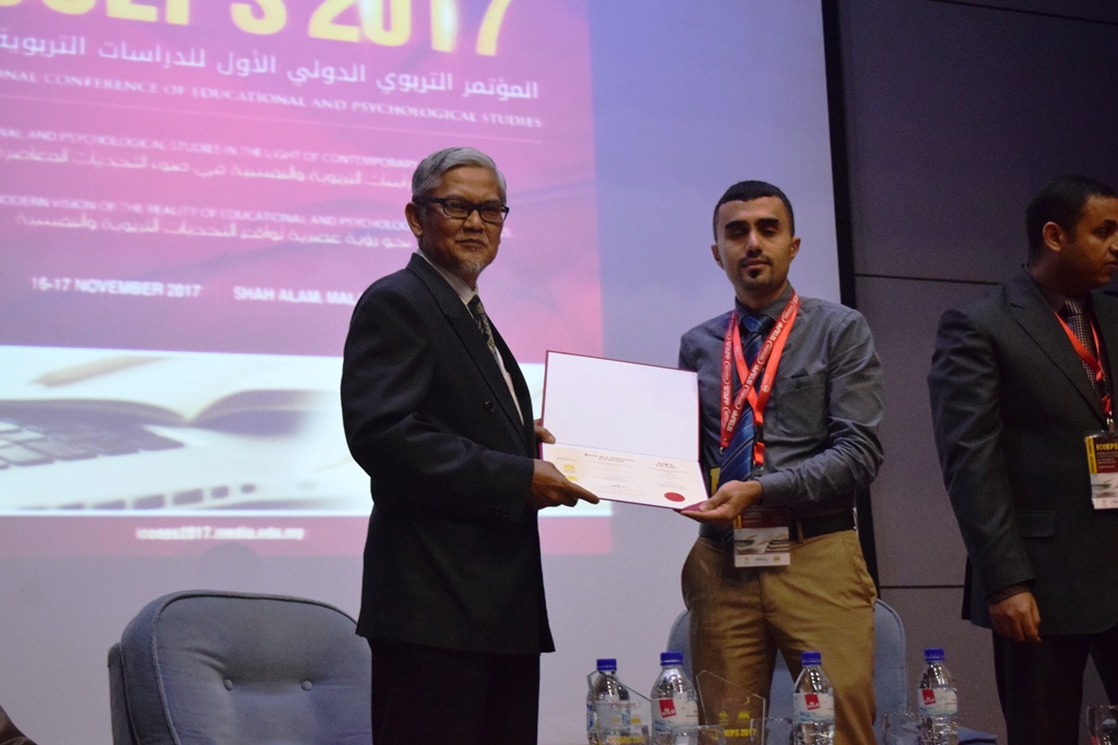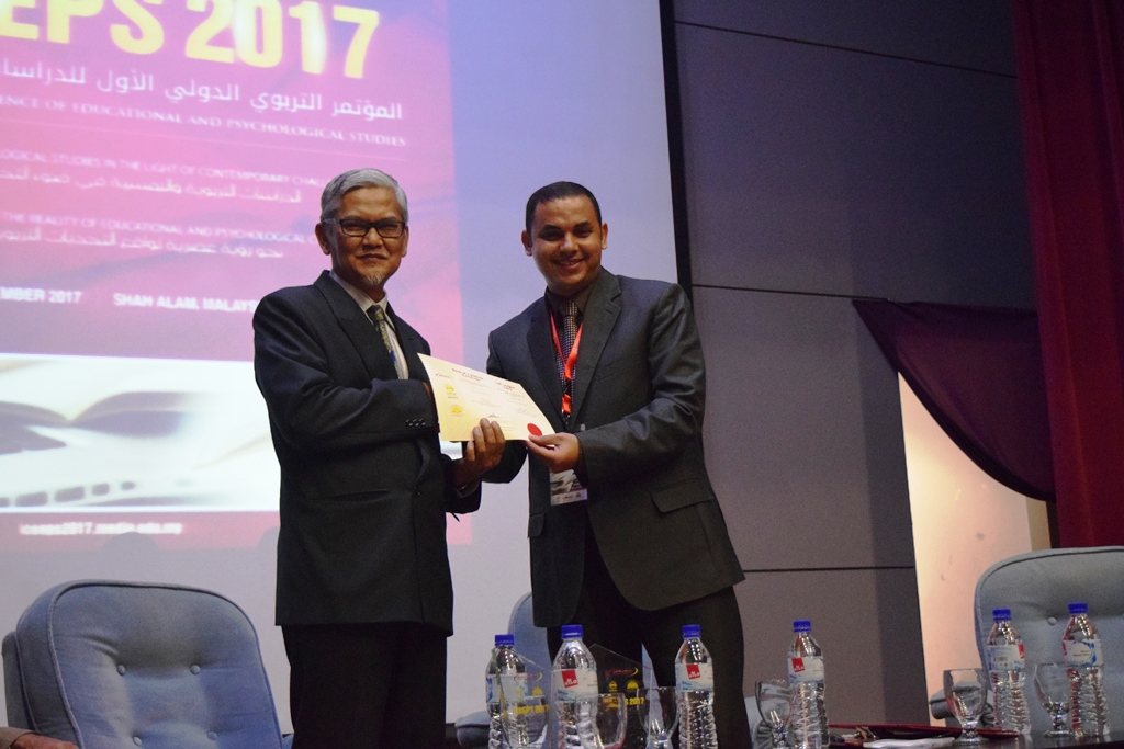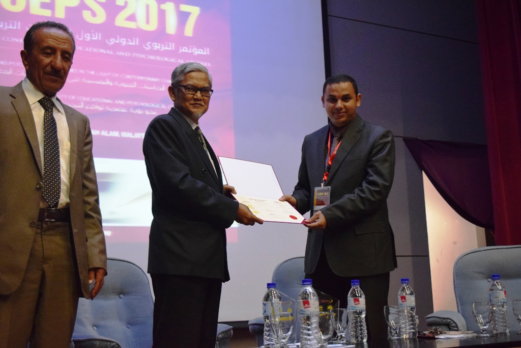 During the closing ceremony, Assoc. Prof. Dr. Ayman Aied Mohammed Mamdouh expresses his grartitude to the Honorable CEO on his patronage and guidance for the implementation of ICOEPS2017 and heartfelt gratitude to the researchers and participants from within and outside the region whom attended the conference. Dr. Mohamed Ibrahim El-Kadah; Assistant Professor of Educational Administration from Al Balqa Applied University, Jordan presented the concluding statement in which he stressed that the conference contributed to the communication between researchers in the field of educational and psychological studies and the exchange of experiences in educationa; scientific research issues.