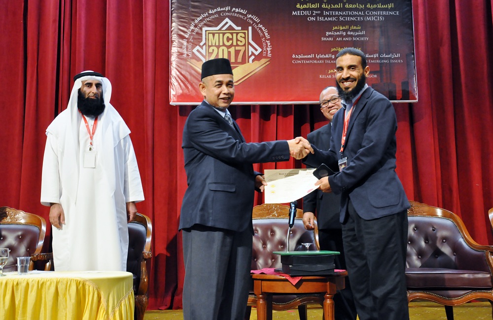 Dr. Saleh Abdul Karim Abdul Jalil Al Balushi, Islamic Studies and Arabic Language Program Director of University of Jumeirah, United Arab Emirates (UAE) presented his closing speech in which he stressed that the conference contributed to the communication between researchers in the field of Islamic studies. Deputy CEO of Student Affairs, Assoc. Prof. Dr. Wan Mat bin Sulaiman was pleased to distribute the certificates of appreciation to the overwhelmed participants and committee members who have participated for MICIS 2017. Assoc.Prof.Dr.Usman Jakfar, Chairman of MICIS 2017 expresses his appreciation to Honorable CEO on his patronage and guidance for the implementation of the conference and heartfelt gratitude to the researchers and participants from within and outside the region whom attended the conference.