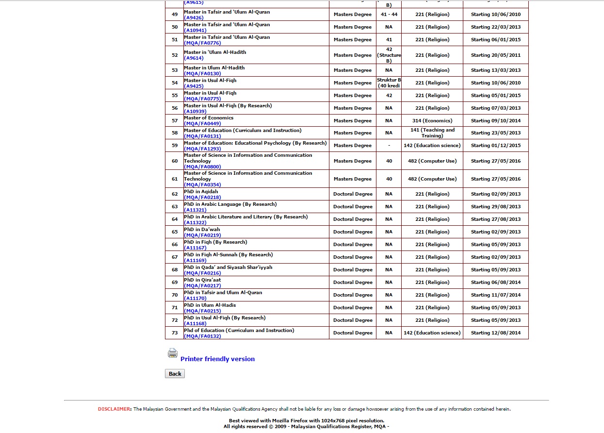 وقد نشرت هيئة الاعتماد الماليزية(MQA) على موقعها الإلكتروني مؤخراً قائمة بثلاث وسبعين برنامجاً من برامج جامعة المدينة العالمية الحاصلة على الاعتماد النهائي من مكتب تسجيل هيئة الاعتماد الماليزية (MQR)، على الرابط لتنافس بذلك شقيقاتها من الجامعات الماليزية العريقة في عددد البرامج الحاصلة على الاعتماد النهائي من مكتب تسجيل هيئة الاعتماد الماليزية (MQRR).