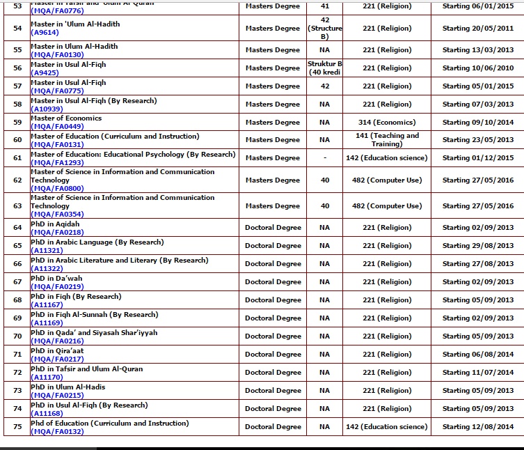وقد نشرت هيئة الاعتماد الماليزية(MQA) على موقعها الإلكتروني مؤخراً قائمة بخمسة وسبعين برنامجاً من برامج جامعة المدينة العالمية الحاصلة على الاعتماد النهائي من مكتب تسجيل هيئة الاعتماد الماليزية (MQR)، على الرابط لتنافس بذلك شقيقاتها من الجامعات الماليزية العريقة في عدد البرامج الحاصلة على الاعتماد النهائي من مكتب تسجيل هيئة الاعتماد الماليزية (MQR).