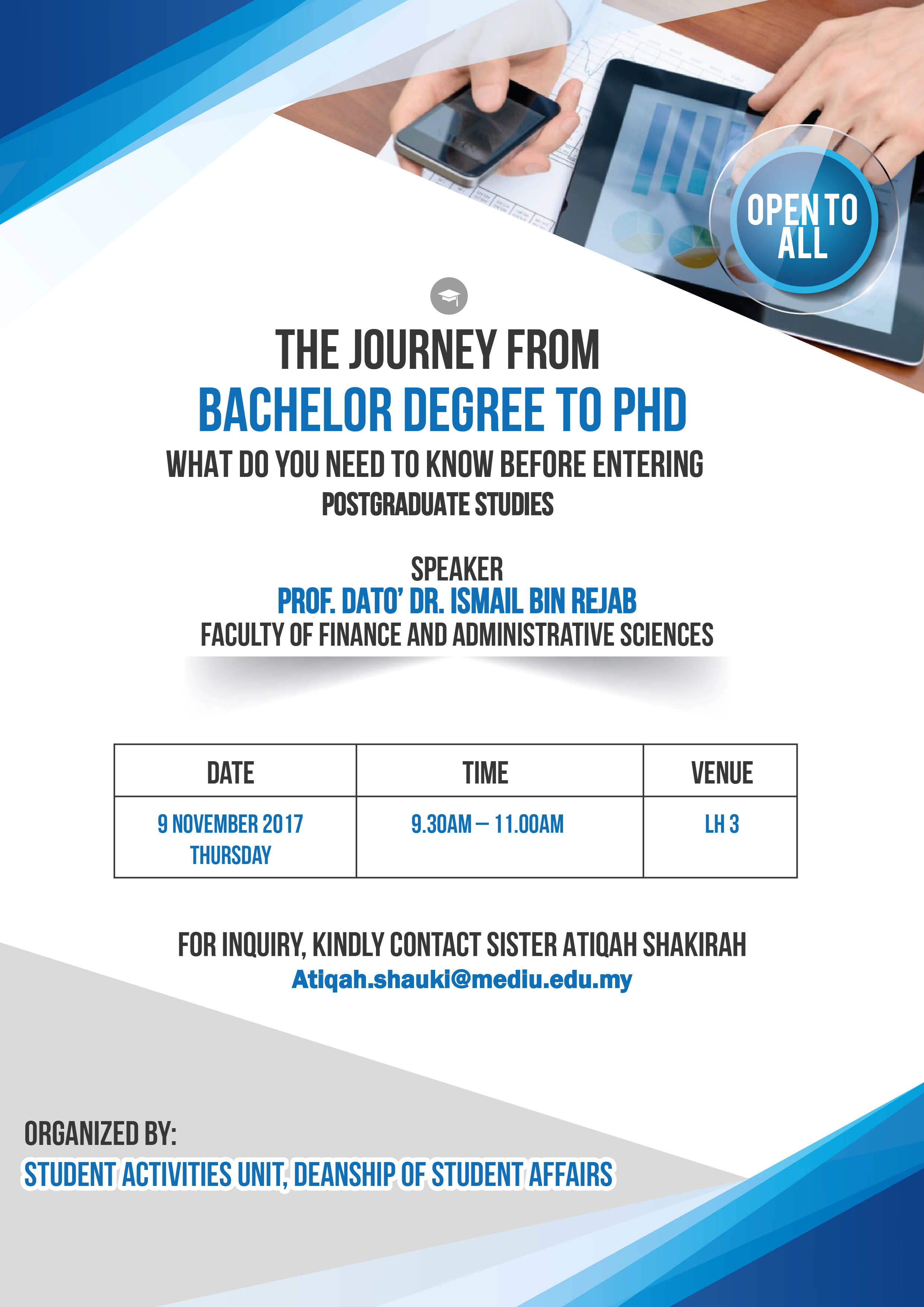 Aktiviti Pelajar: Bicara Perjalanan dari Ijazah Sarjana Muda ke Pengajian PhD