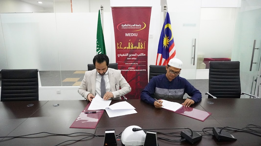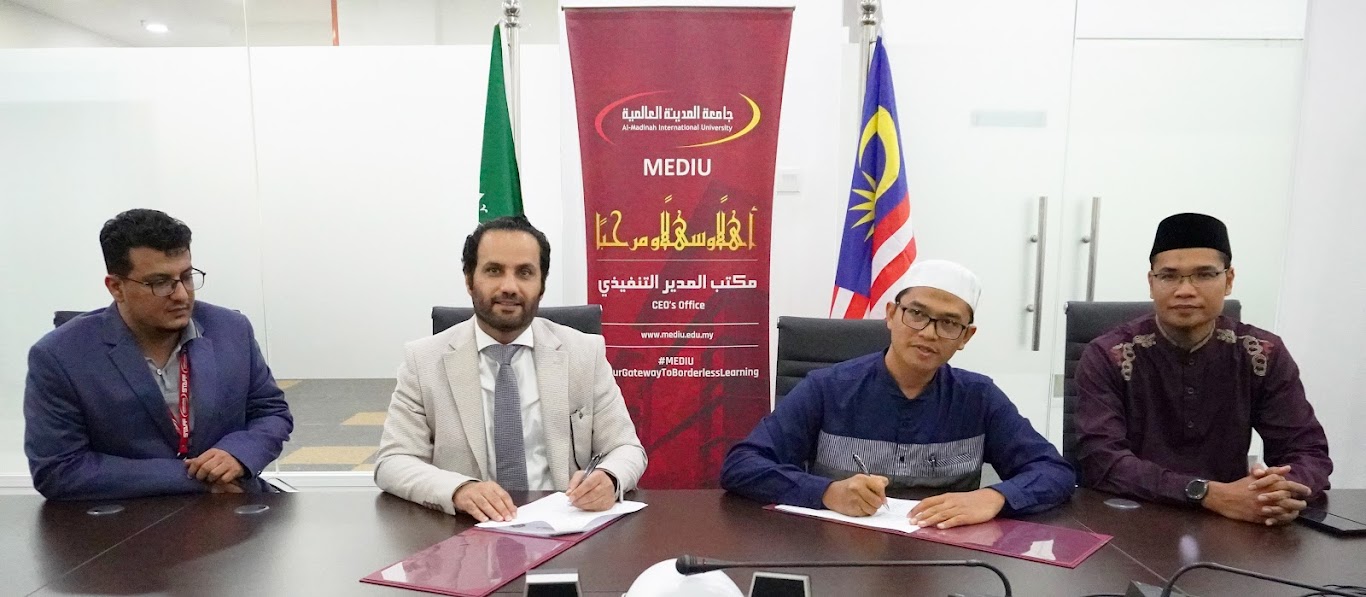 The visit culminated in the signing of a memorandum of understanding between the parties. The memorandum of understanding was signed by Dr. Abdullah Alarefi, MEDIU CEO, and Mr. Khair Al-Nahar, The Director of Assunnah Islamic University. In addition, Mr. Khair Al-Nahar The Director of Al-Sunnah Islamic University stressed his desire to benefit from the expertise of Al-Madinah International University and to enroll their educational cadres for postgraduate studies at Al-Madinah International University. Finally, the delegation invited Dr. Abdullah Alarefi to visit Assunnah Islamic University and Yayasan Arrisalah Alkhairiyah In Indonesia in the near future.