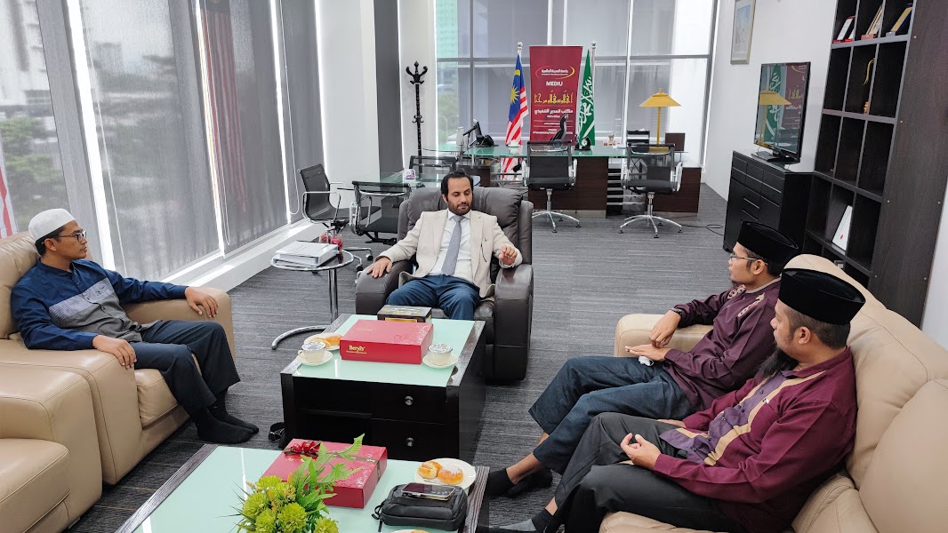 Within the vision of Al-Madinah International University to expand the base of its cooperative partnerships with academic institutions, Dr. Abdullah Saad A. Alarefi, MEDIU CEO, received on morning of 1st September 2022 a delegation from Indonesia representing Assunnah Islamic University and Yayasan Arrisalah Alkhairiyah. The delegation included Mr. Khairul Anhar The Director of Assunnah Islamic University, and Mr. Muslim, Director of Yayasan Arrisalah Alkhairiyah, and Mr. Dori Abu Fadhil, administrator at Yayasan Arrisalah Alkhairiyah, who met MEDIU CEO in his office at the university.