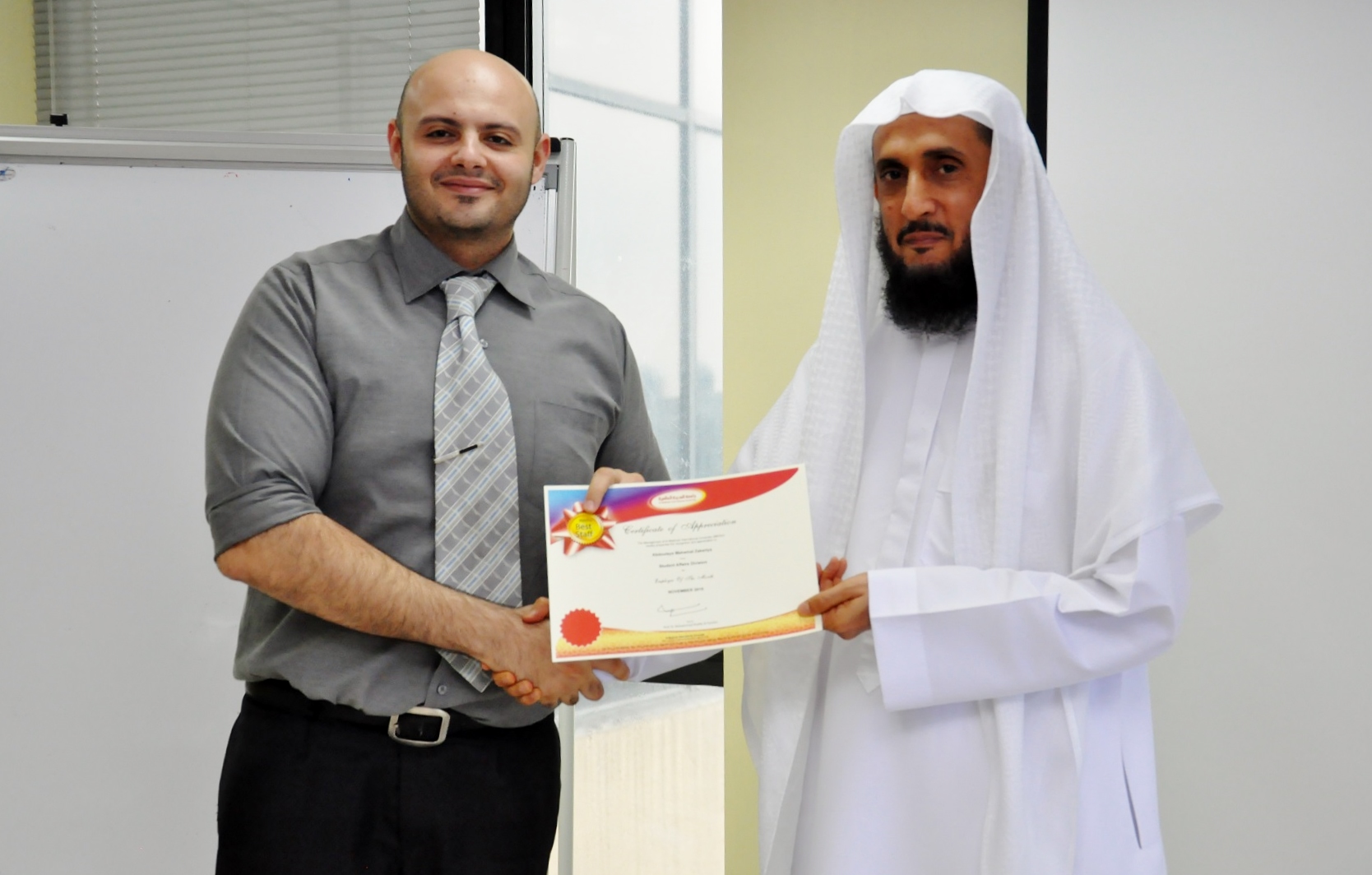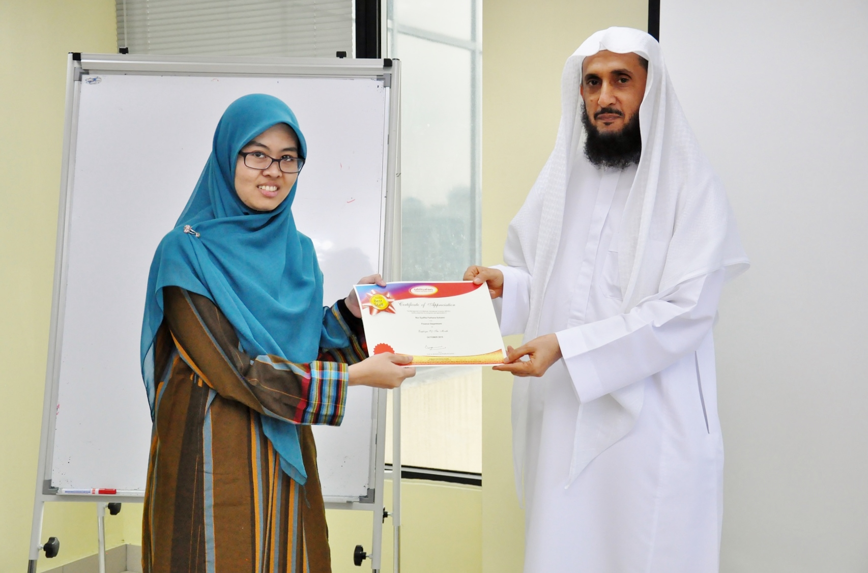 Anugerah Khidmat Cemerlang Untuk Kakitangan Universiti Antarabangsa Al-Madinah (MEDIU) Bagi Suku Keempat Tahun 2015 telah disampaikan oleh Prof. Dr Muhammad Khalifa Al-Tamimi, Ketua Pegawai Eksekutif MEDIU. Anugerah tersebut telah disampaikan pada majlis Himpunan Kakitangan Universiti Antarabangsa Al-Madinah (MEDIU) yang telah diadakan pada 8 januari 2016.