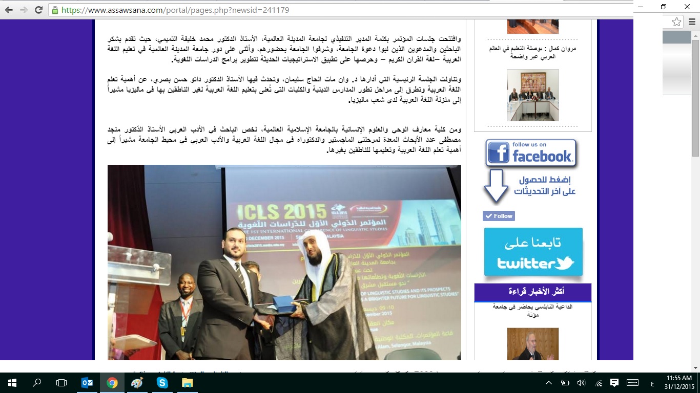 صحيفة السوسنة الأردنية: اختتام فعاليات اليوم الأول من المؤتمر الدّولي الأوّل للدّراسات اللّغوية 2015م