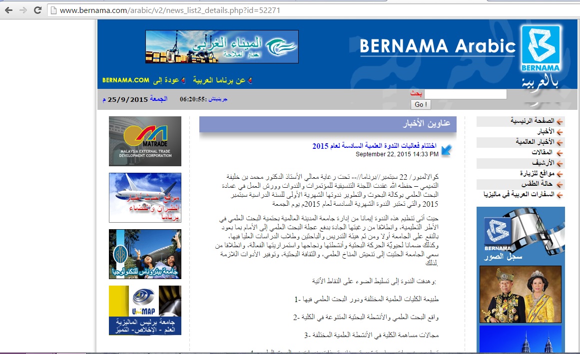 برناما: اختتام فعاليات الندوة العلمية السادسة لعام 2015م