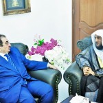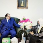 وكان برفقة الأستاذ الدكتور محمد بن خليفة التميمي. الأخ أحمد فلاتة منسق العلاقات العامة حيث تم أثناء اللقاء تسليم خطاب دعوة لزيارة جامعة المدينة العالمية.