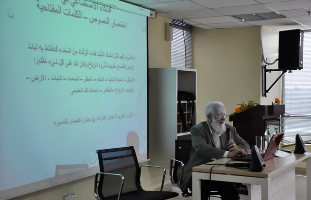 Prof. Dr. Mohammed Zeki Khedher explain on the concept of artificial intelligence and its role and importance in the the age of information technology, and followed by his speech on the importance of investment in the artificial intelligence of Holy Quran as well as in Arabic languages and its linked aspects via the computer software and databases in dictionaries and scientific projects related.