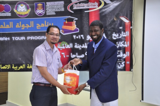 The delegates was welcomed by Deputy CEO of Academic Affairs Division, Assoc.Prof. Dr Hj. Wan Mat Hj Sulaiman, Dean Faculty of Languages; Assoc.Prof. Dr. Daud Abdul Quadir Elega along with respective faculty members namely Asst. Prof. Dr. Elsayed Mohamed Salem, Asst. Prof. Dr. Abdulwasiu Isiaq Nasirudeen and Asst. Prof. Dr. Flayyih Mudhhi Ahmed. The educational trip enables the students to gain more information on university’s development, academic programmes available as well as to gain exposure on the Arabic learning environment in the university.
