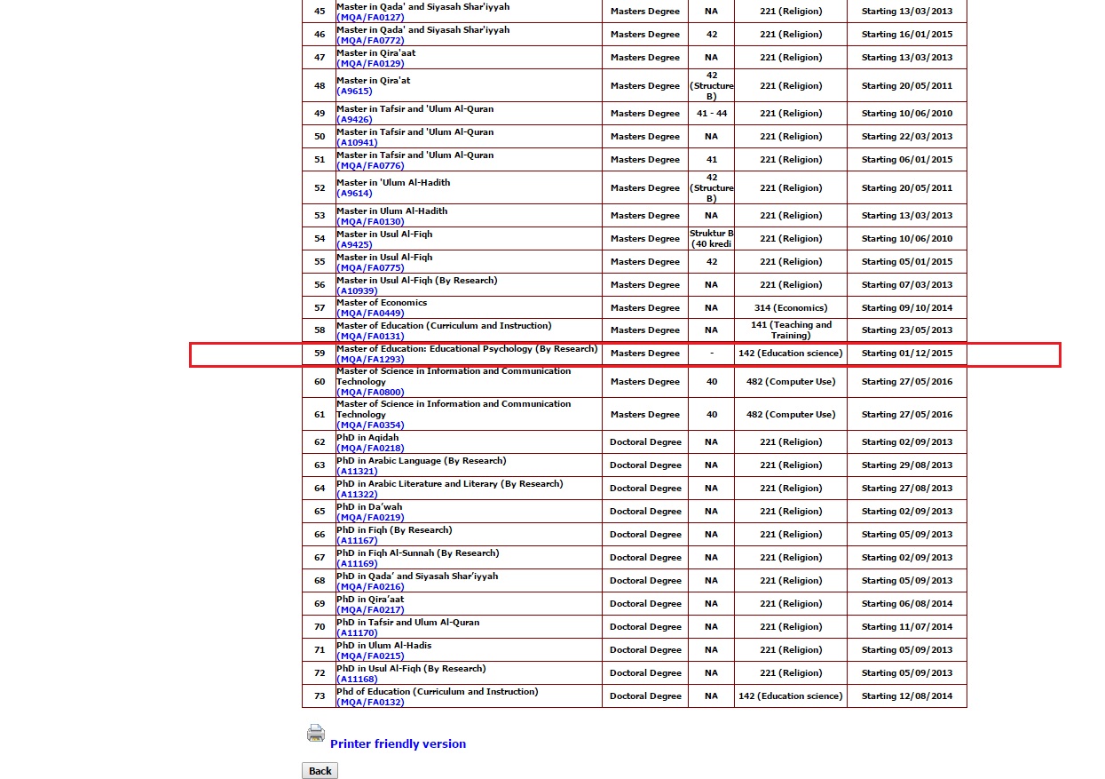 موافقة هيئة الاعتماد الأكاديمي الماليزية (MQA) للاعتماد النهائي لبرنامج الماجستير في التربية تخصص علم النفس التربوي