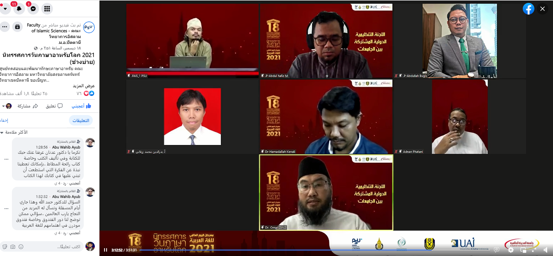 The Secondary School Arabic Language Competition was held virtually for Thailand’s secondary schools on 18 December 2021. Meanwhile, the International Dialogue Seminar was hosted for speakers from five countries namely Malaysia, Thailand, Indonesia, Pakistan and Bangladesh with the topic ‘The Arabic Speakers in Non-Arab countries; Prospects and Aspirations to Serve the Nation’. The speakers shared their experiences and expertise in teaching Arabic language in their respective countries.