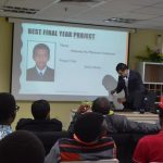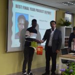 3- الطالب بوبا جبريل وحصل على جائزة أفضل تقرير لمشروع التخرج. و قد قدم أفضل بحث لمشروع التخرج، و كان مشروعه عبارة عن نظام حجز تذاكر حافلات السفر عبر الإنترنت “Online bus reservation system”.