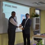 و في نهاية الحفل قدم كل من الدكتور وائل يفوز و الدكتور مأمون جاموس العديد من النصائح لطلاب الكلية بشأن اختيارهم لمشاريع التخرج الخاصة بهم في الفصول القادمة و أهمية تطوير مهاراتهم و تحديد مجالات مشاريعهم في المجالات التقنية الحديثة.