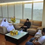 استقبل معالي المدير التنفيذي لجامعة المدينة العالمية الأستاذ الدكتور محمد بن خليفة التميمي في مكتبه في المقر الرئيس للجامعة في شاه علم يوم الخميس الموافق 17 مارس 2016م وفد من أبنائه خريجي مرحلة الدكتوراه والمقيمين في مكة المكرمة، لزيارة ودية تهدف إلى التواصل مع خريجي الجامعة من كافة أنحاء العالم وكذلك إطلاع ابنائها الخريجين على آخر الإنجازات التي حققتها الجامعة .