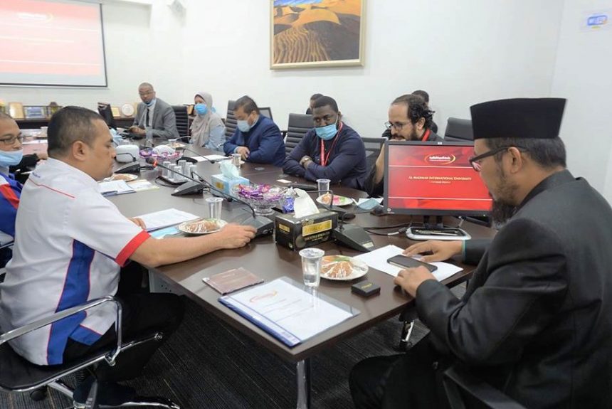 Delegasi PPZ-MAIWP disambut oleh Ketua Eksekutif MEDIU, Prof. Madya Dr. Fadlan Mohd Othman diiringi Prof. Madya Dr. Tayeb Mebrouki, Pemangku Timbalan Ketua Eksekutif Bahagian Hal Ehwal Akademik; Prof. Madya Dr. Doucoure Abdou Samadou, Pemangku Timbalan Ketua Eksekutif Bahagian Hal Ehwal Pelajar; Encik Ahmad Fallatah, Ketua Perhubungan Antarabangsa dan Puan Nurul Ashikin Abdul Latiff, Pendaftar MEDIU.