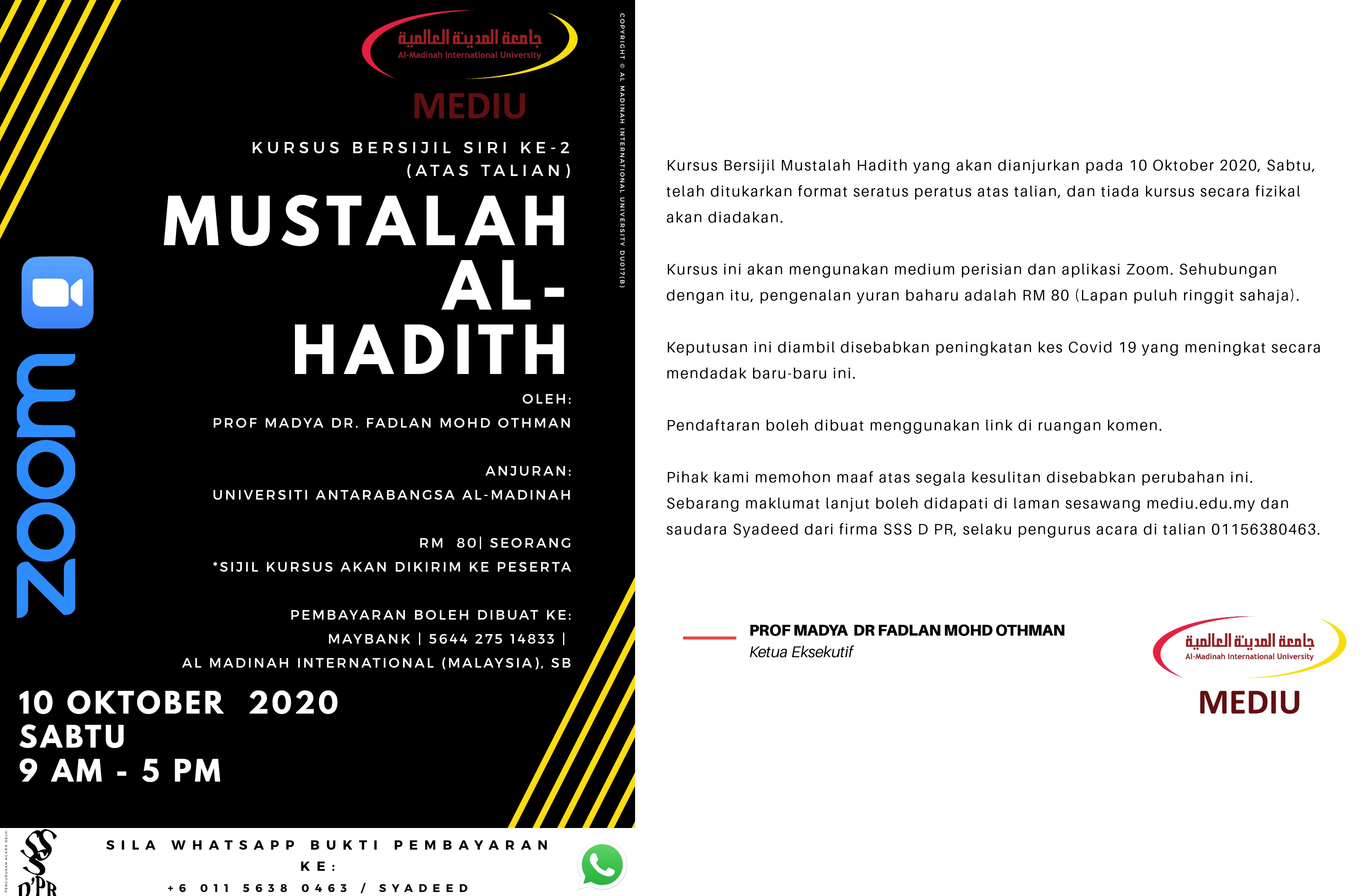 KURSUS BERSIJIL SIRI KE-2: MUSTALAH AL-HADITH (ATAS TALIAN)