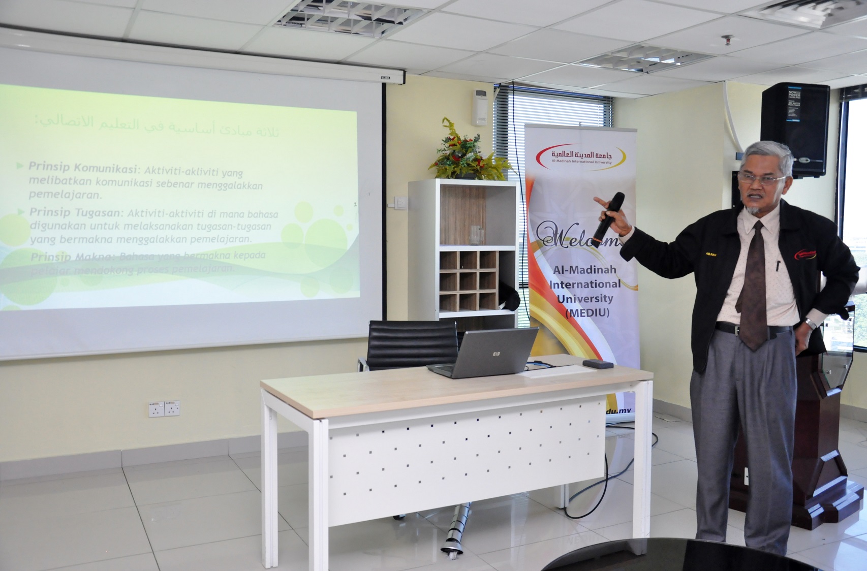 Bagi mewujudkan kaedah pengajaran Bahasa Arab yang lebih bersistematik, Fakulti Bahasa Universiti Antarabangsa Al-Madinah (MEDIU)b telah menganjurkan Kursus Pembangunan untuk Pensyarah Pusat bahasa Arab dan Pensyarah Program Asasi Pengajian Islam dan Bahasa Arab. Program ini telah berlangsung pada 3 November 2015 bertempat di Dewan Kuliyah, Tingkat 14 Plaza Masalam, bertujuan untuk memberi pendedahan dan kemahiran dalam pengajaran Bahasa Arab berasaskan kaedah asal dengan gabungan teknologi ICT yang lebih mudah dan banyak memberi kelebihan bagi menyampaikan maklumat yang tepat berkenaan pembelajaran Bahasa Arab secara lebih berkesan.