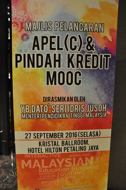 Universiti Antarabangsa Al-Madinah (MEDIU) telah menghadiri Majlis Pelancaran dan Sesi Taklimat Pengakreditan Pembelajaran Berasaskan Pengalaman Terdahulu Bagi Tujuan Penganugerahan Kredit [APEL(C)] & Pindahan Kredit Massive Open Online Courses (MOOCs) yang telah diadakan di Hotel Hilton,Petaling Jaya pada hari Selasa, 27 September 2016.