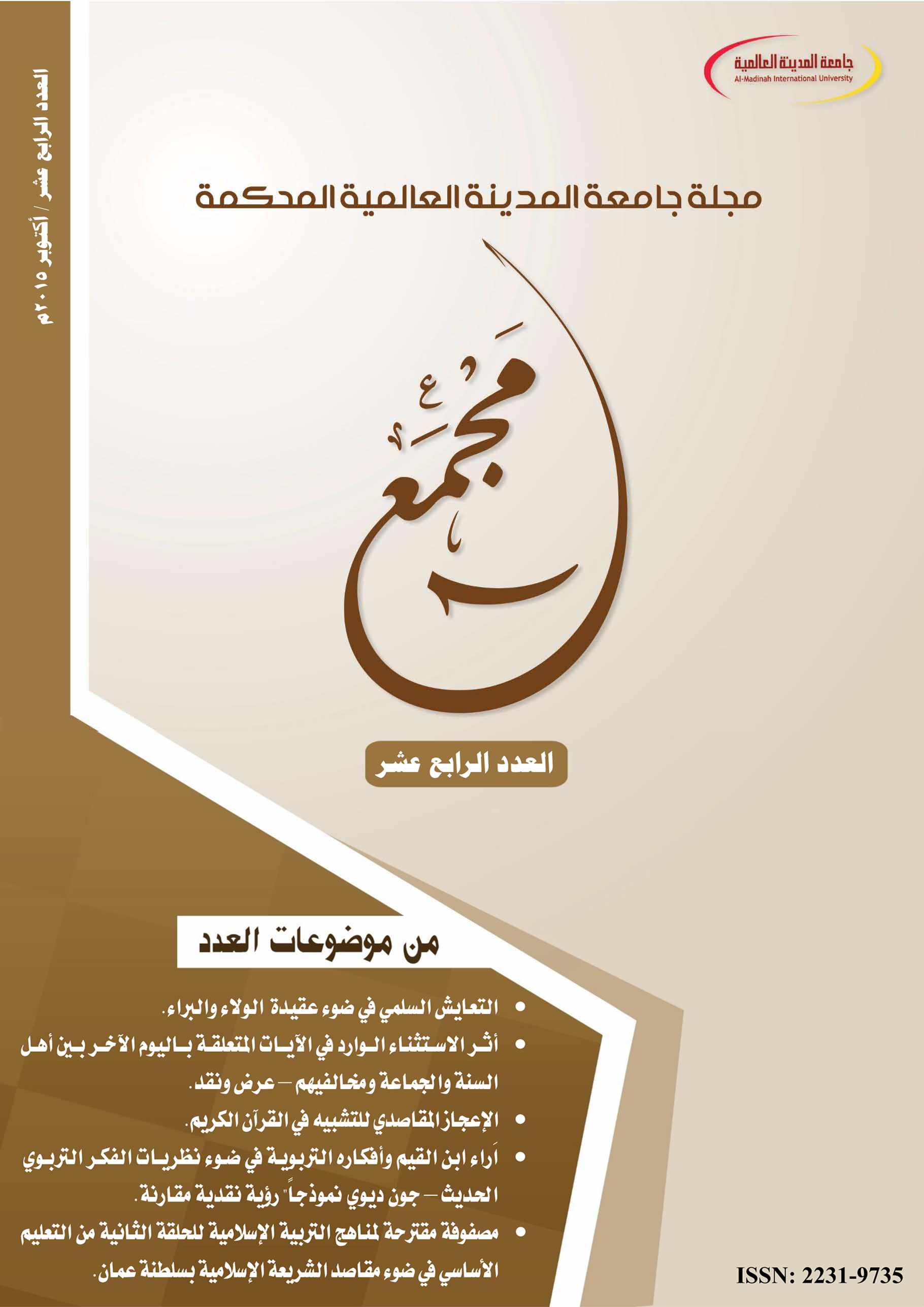 د ميمونة درويش الزدجاليةد ناصر راشد الغداني  البحوث التربوية مصفوفة مقترحة لمناهج التربية الإسلامية للحلقة الثانية من التعليم الأساسى فى ضوء مقاصد الشريعة الإسلامية بسلطنة عمان. 18
