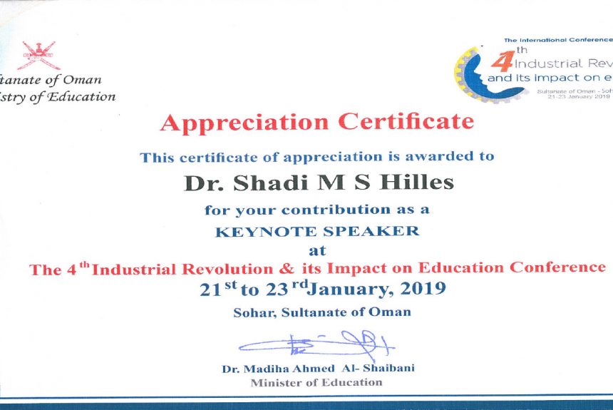 Universiti Antarabangsa Al-Madinah (MEDIU) mengambil bahagian dalam Persidangan Antarabangsa: Revolusi Perindustrian 4.0 dan Kesannya terhadap Pendidikan (http://conference.n-batna.com/) yang diadakan di Sohar, Kesultanan Oman dari 21-23 Januari 2019. Persidangan itu dianjurkan oleh Direktorat Pendidikan Pendidikan Kementerian Pendidikan Oman.
