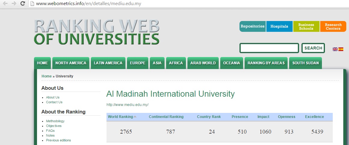 With the grace of God Al-Mighty; webometrics has released the first half results for 2016 that shows MEDIU earning its 8th place in the Malaysia’s private university level and 24th for the overall Universities in Malaysia.