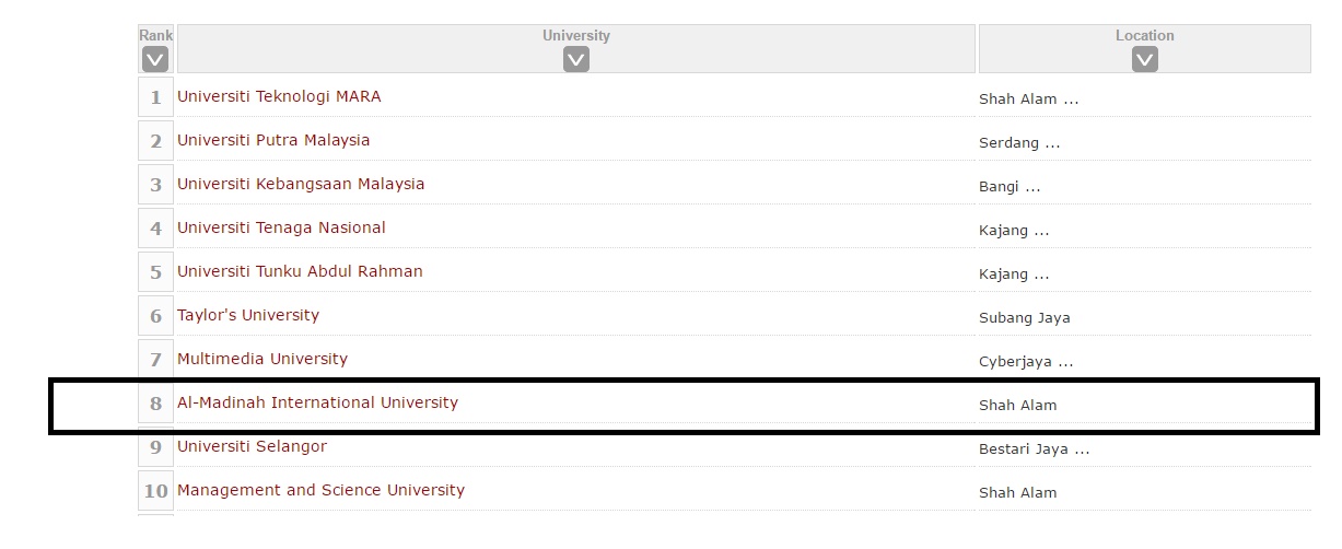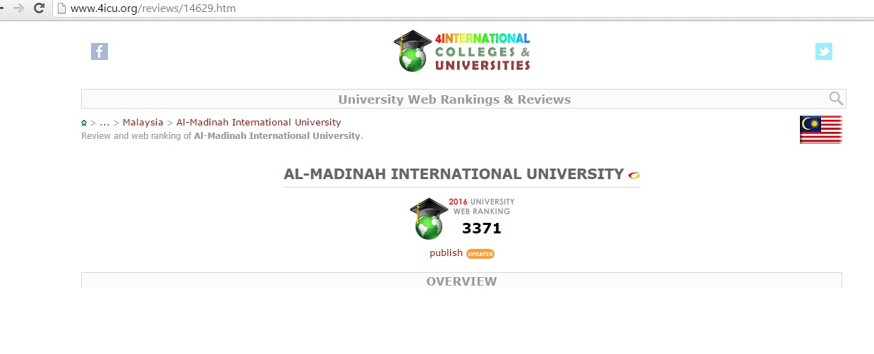 Al-Madinah International University (MEDIU) has got through the classification results of according to the Australian Classification of Universities and International Institutes (4ICUs) for the second half of 2016; with the results of 5th place in the category of private Malaysian universities, 8th place in the Malaysian universities in general and place 3,371th place for worldwide universities.