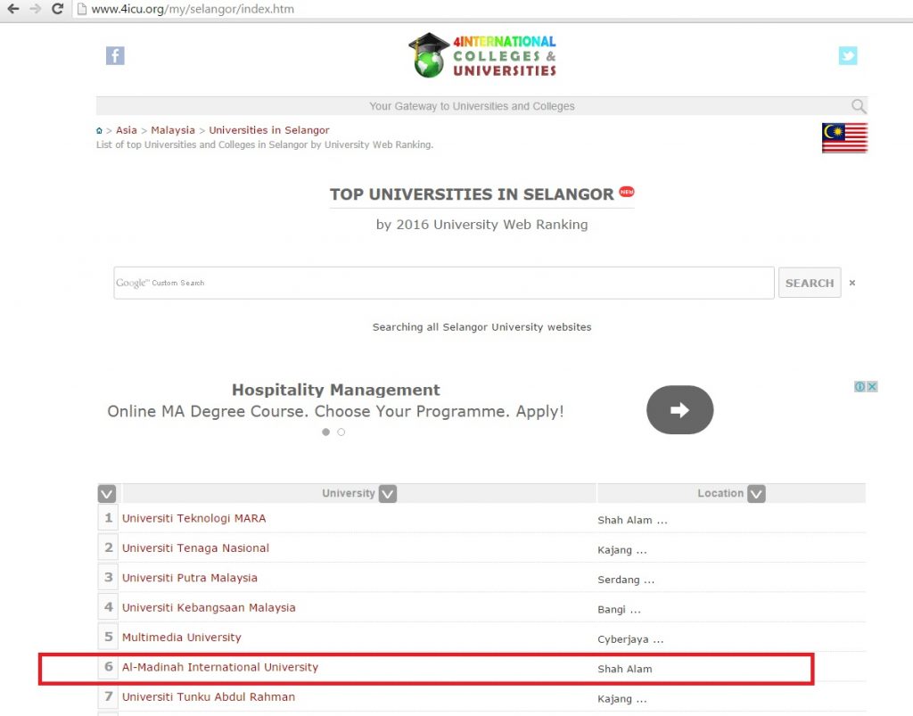 **Source: Australian Classification of Universities and International Institutes (4ICUs) http://www.4icu.org/my/ and http://www.4icu.org/my/selangor/index.htm