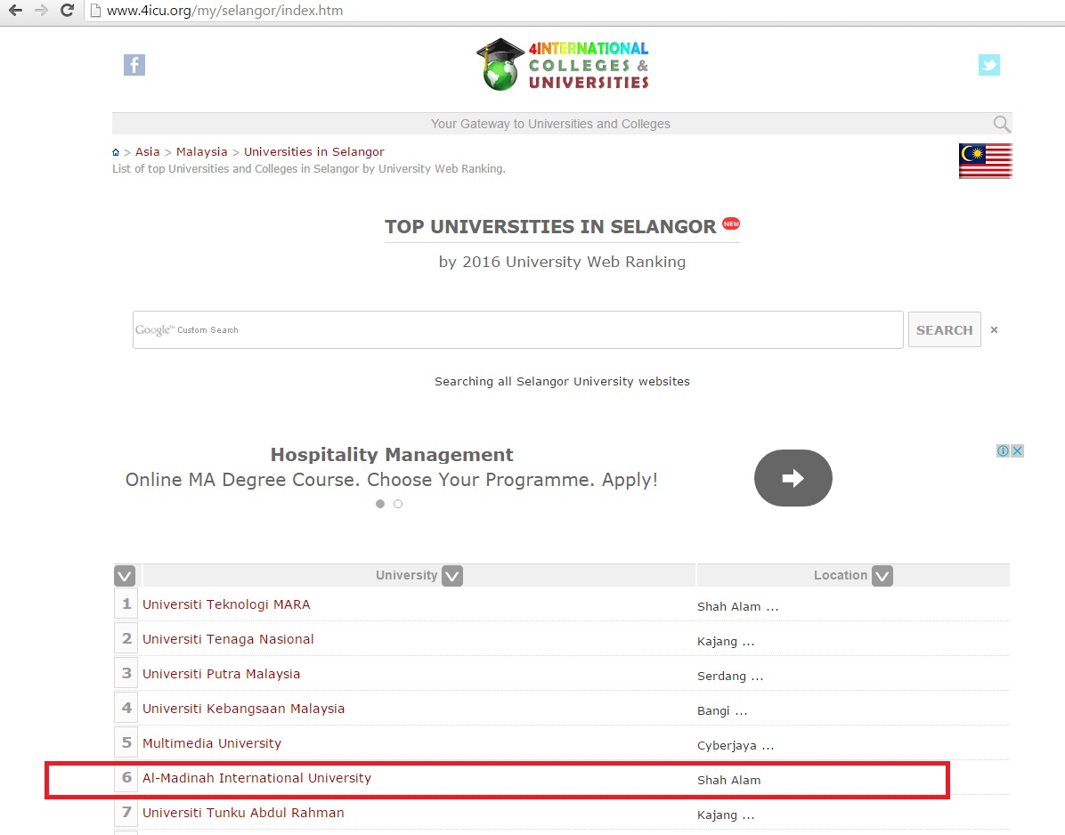 **Source: Australian Classification of Universities and International Institutes (4ICUs) http://www.4icu.org/my/ and http://www.4icu.org/my/selangor/index.htm