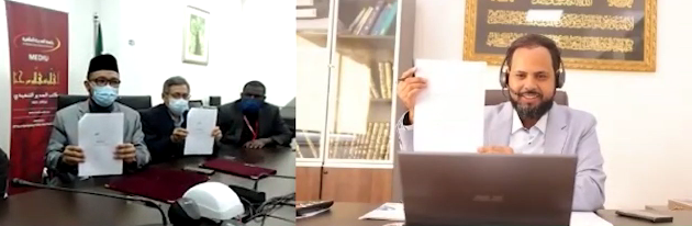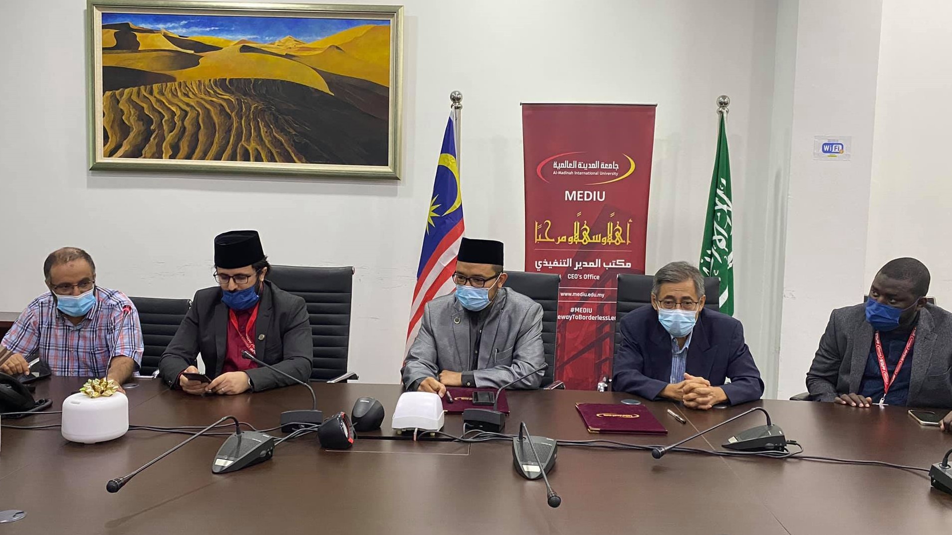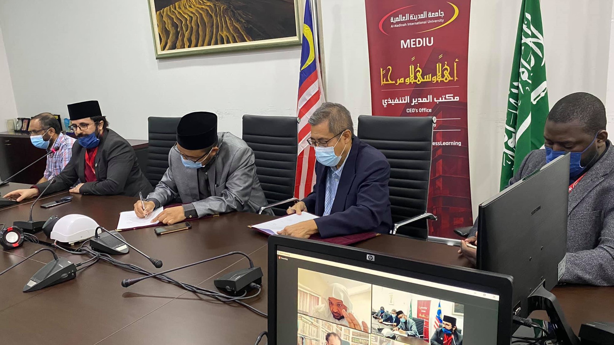 Sesi ini diadakan secara dalam talian antara Ketua Eksekutif MEDIU, Prof. Madya Dr. Fadlan bin Mohd Othman dan Dr. Saeed Al-Qadi, Pengerusi Birmingham College of Humanities serta disaksikan oleh Penasihat Undang-Undang MEDIU, Tuan Syed Hashim Bin Ahmad Al-Qudsi; Timbalan Ketua Eksekutif (Hal Ehwal Akademik), Prof. Madya Dr. Tayeb Mebrouki; Timbalan Ketua Eksekutif (Hal Ehwal Pelajar), Prof. Madya Dr. Doucoure Abdou Samadou dan Dekan Fakulti Sains Islam, Prof. Madya Dr. Fouad Bounama.