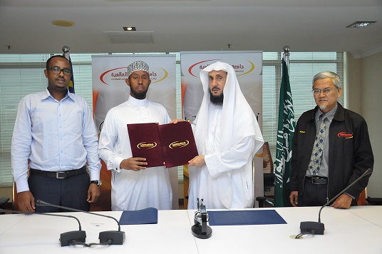Majlis tersebut ditandatangani oleh Ketua Pegawai Eksekutif, Prof. Dr. Mohammad Khalifa Al-Tamimi dan Sheikh Kareem Abdul Wali Mohammad Yousuf, Ahli Majlis Shura Persatuan Islam Eropah. Beliau juga merupakan seorang Imam dan Khatib Pusat Islam Helsinki di Finland. Perjanjian tersebut disaksikan oleh Prof.Madya.Prof.Dr.AB Rahim, Timbalan Ketua Pegawai Eksekutif, Jabatan Penyelidikan dan Pembangunan, Encik Abdilahi Liban; Ketua Pembangunan Pentadbiran dan Jabatan Latihan dan Prof.Madya Dr.Quadir Elega, Dekan Fakulti Bahasa.