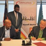وقع من جانب جامعة المدينة العالمية المدير التنفيذي للجامعة الأستاذ الدكتور عصماوي بن زين ومن جانب جامعة وايدسوم الأستاذ الدكتور عبد الوهاب إدريس ديجي، المدير التنفيذي لجامعة وايدسوم، وذلك إثر الزيارة التي قام بها وفد من جامعة وايدسوم إلى مقر جامعة المدينة العالمية لبحث أوجه التعاون المشترك. وذلك بحضور نائب المدير التنفيذي للشؤون الأكاديمية الأستاذ الدكتور عبد الرحيم اسماعيل والأستاذ الدكتور داود عبد القادر إيليغا؛ عميد مركز اللغات والدراسات التحضيرية في جامعة المدينة العالمية.
