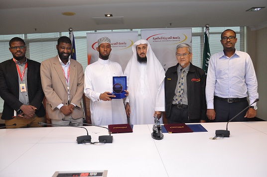 The MoU session was signed between Honorable MEDIU’s CEO, Prof.Dr.Mohammad Khalifa Al-Tamimi and Sheikh Kareem Abdul Wali Mohammad Yousuf, Member of the Shura Council of Muslims Europe Association. He is also an Imam and preacher of the Helsinki Islamic Center in Finland. The session was held in the presence of Deputy CEO of Research and Development Division; Assoc.Prof.Dr.AB Rahim Ismail, Mr.Abdilahi Liban; Head of Administrative Development and Training Department and Assoc.Prof.Dr.Daud Quadie Elega, Dean Faculty of Languages to witness the session.