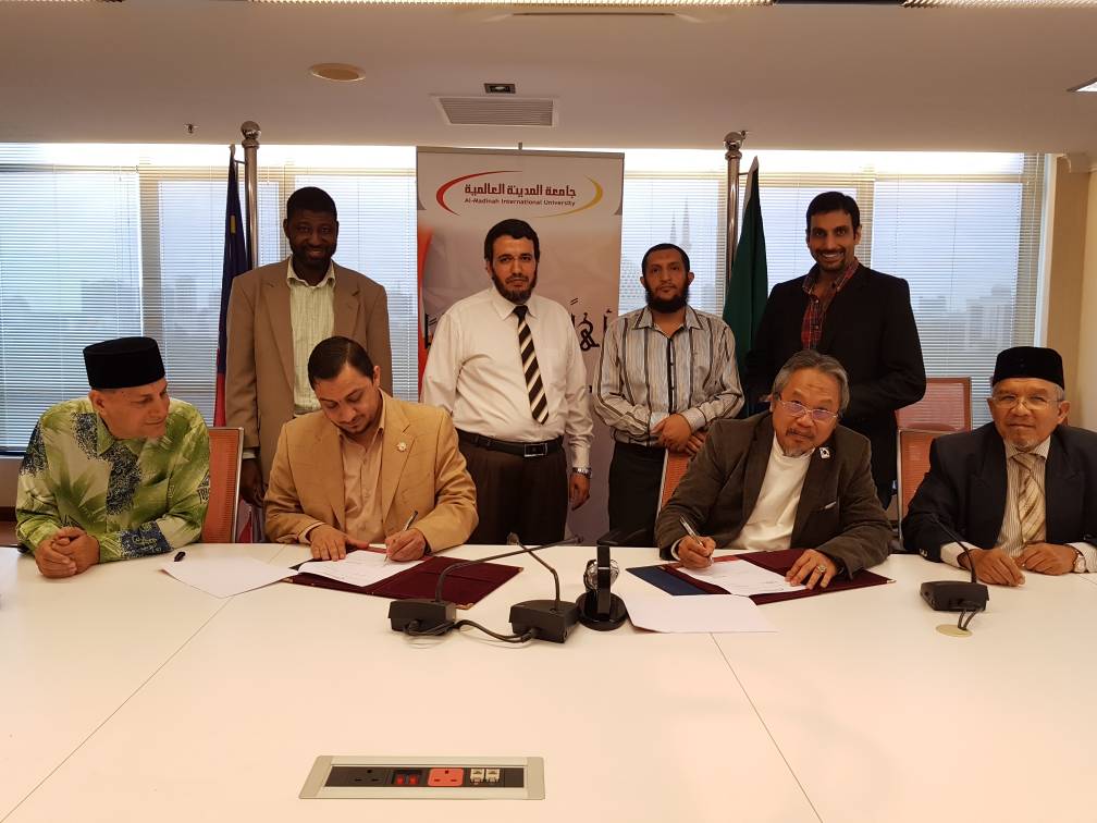 The MoU was signed between MEDIU’s Honorable CEO; Prof. Emeritus Dr. Ismawi Zen and Vice President and Director of Project Management, Dr. Tamam Ali Mustafa in the presence of MEDIU’s Deputy CEO of Research & Development; Prof. Dr. Hj. Wan Sulaiman Bin Wan Yusoff, Deputy Director of Research Management Centre (RMC); Dr. Bashar Mudhaffar Abdullah, Mr. Abdulkarem Mohammed Hussein Al-Rawdhi and Prof. Dr. Daud Abdul Quadir Elega.