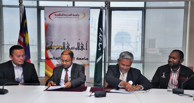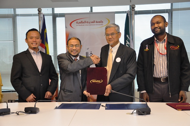 The MoU session were represented by MEDIU’s Deputy CEO of R&D Division; Assoc. Prof. Dr. AB Rahim Ismail meanwhile Fajar Hidaya International Sdn Bhd were represented by Prof.Dr.Azizan Ahmad.  Mr.Abdilahi Liban; MEDIU’s Head of Administrative Development and Training Department and Asst. Prof. Dr. Bakare Kazeem Kayode, Dean of University Development and Quality were also present to witness the session.