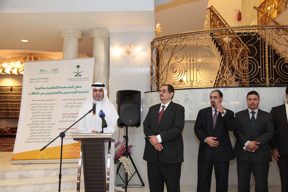 Theguest of honor of the ceremony were Dr. Ahmed bin Mohammed Al-Issa, Saudi Arabia Minister of Education where he was welcomed by Prof. Zayed bin Ojair Al-Harethi, Cultural Attaché for the Embassy of Kingdom of Saudi Arabia and H.E Mr.Fahad Abdullah Al-Rashid, Ambassador of the Kingdom of Saudi Arabia in the presence of representatives from various middle east embassies, institution, expatriates, students and SACM officials.