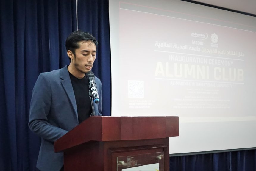 Universiti Antarabangsa Al-Madinah (MEDIU) baru-baru ini mengadakan Majlis Pelancaran ‘MEDIU Alumni Club’ pada hari Selasa, 8 September 2020. Majlis tersebut dirasmikan oleh Ustaz Nushi bin Mahfodz, Pegawai Khas YB Timbalan Menteri Di Jabatan Perdana Menteri (Hal Ehwal Agama) disaksikan oleh Ketua Eksekutif(KE) MEDIU, Prof. Madya Dr. Fadlan Mohd Othman di saksikan oleh Pihak Pengurusan Tertinggi MEDIU iaitu Prof. Madya Dr. Doucoure Abdou Samadou, Pemangku Timbalan KE Bahagian Hal Ehwal Pelajar; Prof. Madya Dr. Tayeb Mebrouki, Pemangku Timbalan KE Bahagian Hal Ehwal Akademik dan Prof. Madya Dr. Omar bin Mohammed Din, Dekan Bahagian Hal Ehwal Pelajar; Encik Fuad Ahmad bin Umar Al As, Pengarah Bahagian Perkhidmatan Pengurusan.