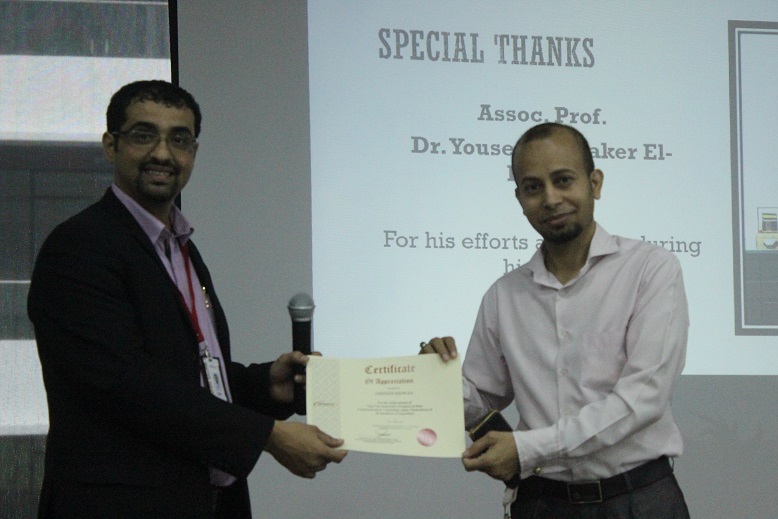 Encik Samer Bamansoor, Ketua Jabatan Teknologi Maklumat pula membentangkan jalur dan peluang kerjaya setelah tamat pembelajaran manakala Asst. Prof. Dr. Abdallah Mahmoud Mousa Altrad, Ketua Jabatan Komputer ringkas mengenai peraturan dan peraturan fakulti, panduan komunikasi dan sebagainya kepada para pelajar.