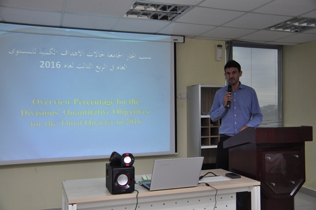 Pada himpunan tersebut dibentangkan perkembangan dan gerak kerja yang telah terlaksana pada suku ketiga tahun 2016, dari bulan Julai sehingga September. Prof. Dr. Muhammad Khalifa memberi penekanan aakan semangat kerja berpasukan yang memainkan peranan yang amat penting dalam mencapai kejayaan. Beliau juga menggesa kakitangan untuk melaksanakan sesuatu kerja secara berpasukan dengan kerjasama yang erat sesama rakan di dalam unit dan jabatan masing-masing. Pihak universiti telah berjaya mencapai 87.91% objektif kuantitatif bagi suku ketiga 2016. Beliau juga memberi taklimat ringkas akan pencapaian semasa universiti yakni, kelulusan lesen institusi dwi-mod, 70 program akademik telah menerima status akreditasi penuh oleh Agensi Kelayakan Malaysia (MQA) dan perancangan universiti untuk membuka cawangan universiti di negeri-negeri lain di Malaysia