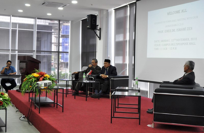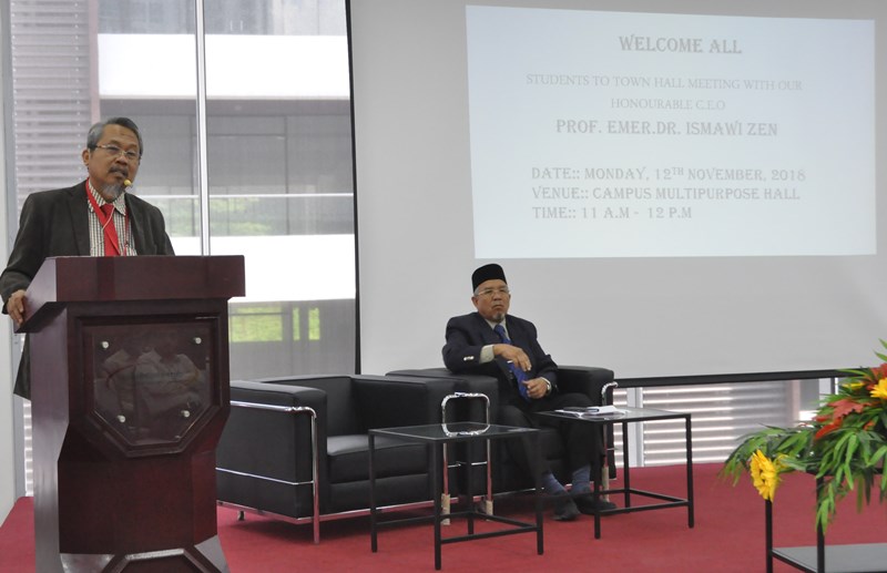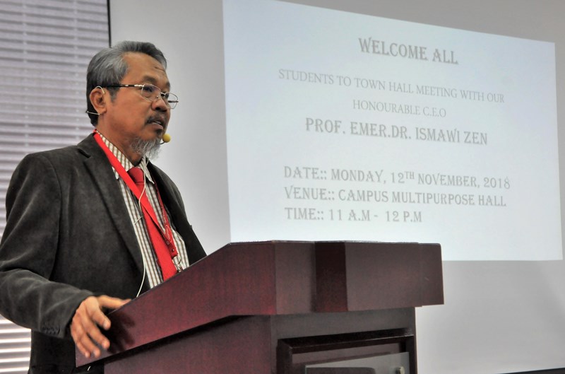 Prof. Emeritus Dr. Ismawi Zen dalam ucapan pembukaannya, menyatakan kegembiraannya atas peluang mengadakan perhimpunan itu dengan mahasiswa mahasiswi MEDIU dan menekankan pentingnya dialog terbuka dan berinteraksi dengan para pelajar secara langsung serta memberi sokongan di dalam perjalanan pembelajaran mereka. Beliau menyatakan bahawa tujuan perhimpunan itu adalah untuk berkomunikasi secara langsung untuk mendengar pendapat dan pandangan para pelajar MEDIU.