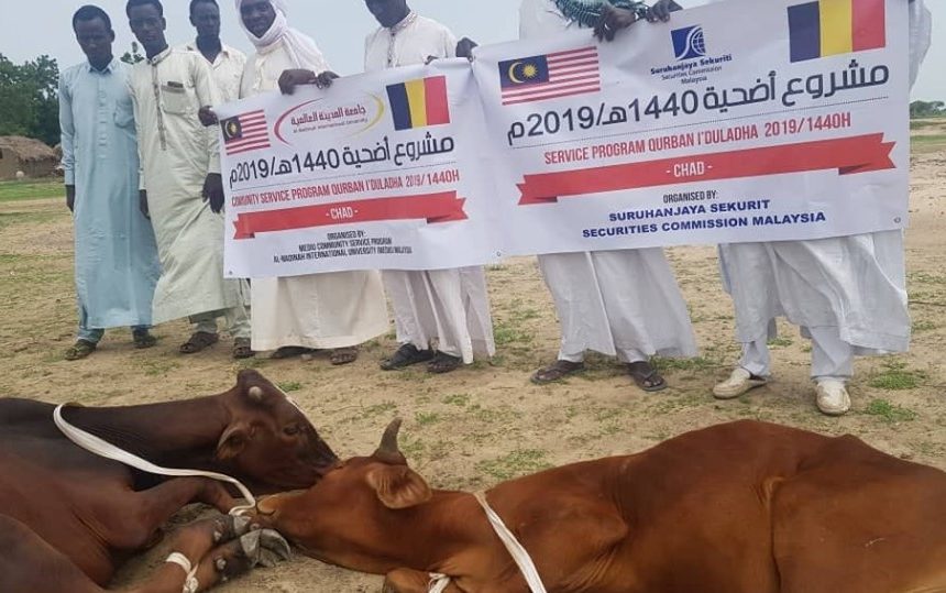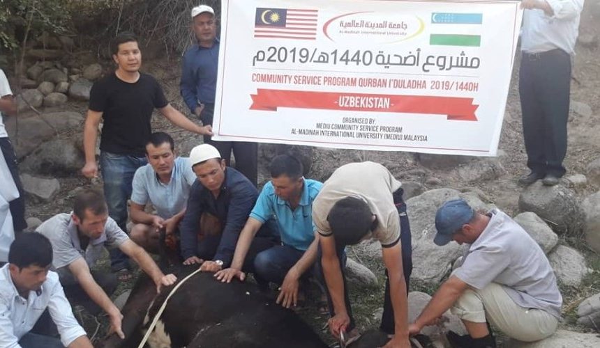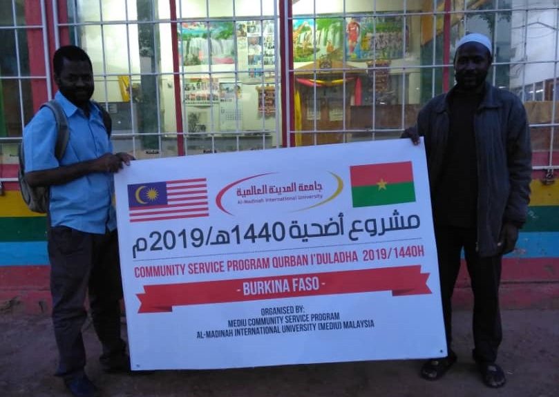 Al-Madinah International University (MEDIU) baru-baru ini menganjurkan Majlis Qurban di Benua Afrika dari 7-17 Ogos 2019. Program ini merupakan sebahagian daripada tanggungjawab sosial korporat universiti berhubung dengan program komuniti untuk mengukuhkan hubungan dengan komuniti Islam di seluruh dunia serta menegakkan semangat ukhwwah di kalangan umat Islam dengan semangat Eidul Adha. Program tahunan ini merupakan anjuran program Aktiviti Kemasyarakatan MEDIU MEDIU Community Service Program) yang diketuai oleh Ust.Jamaluddin Hussain, Ketua Jabatan Perhubungan Umum serta kerjasama bersama Badan Kebajikan Kakitangan Islam, Suruhanjaya Sekuriti (BAKTI).