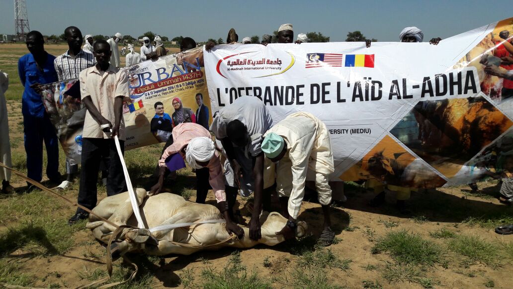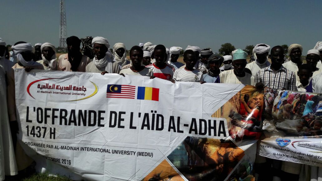 Al-Madinah International University (MEDIU) recently held its Qurban Ceremony in Chad, Africa from 12-15 September 2016. The program was part of university’s corporate social responsibilty in regards to community program to strengthen the ties with the Muslim communities globally as well to uphold the spirit of ukhuwwah among Muslims in the spirit of Eidul Adha.
