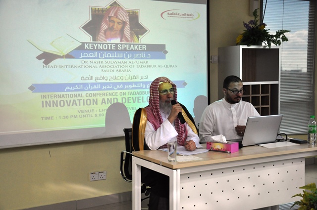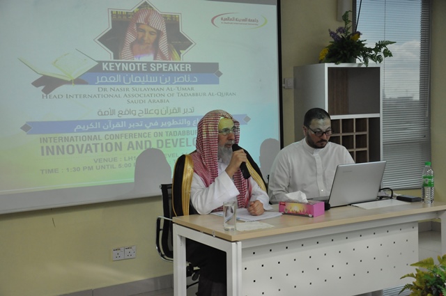 Sheikh Prof. Dr. Nasser bin Sulaiman Al-Omar, Ketua Persatuan Antarabangsa Tadabbur Al-Quran telah berpeluang memberikan wacana ringkas semasa lawatan beliau ke Universiti Antarabangsa Al-Madinah (MEDIU) pada hari Khamis, 17 November 2016. Sesi wacana tersebut telah di hadiri oleh kakitangan dan para pelajar universiti dengan tajuk “Inovasi dan Pembangunan di Tadabbur Al-Quran”.