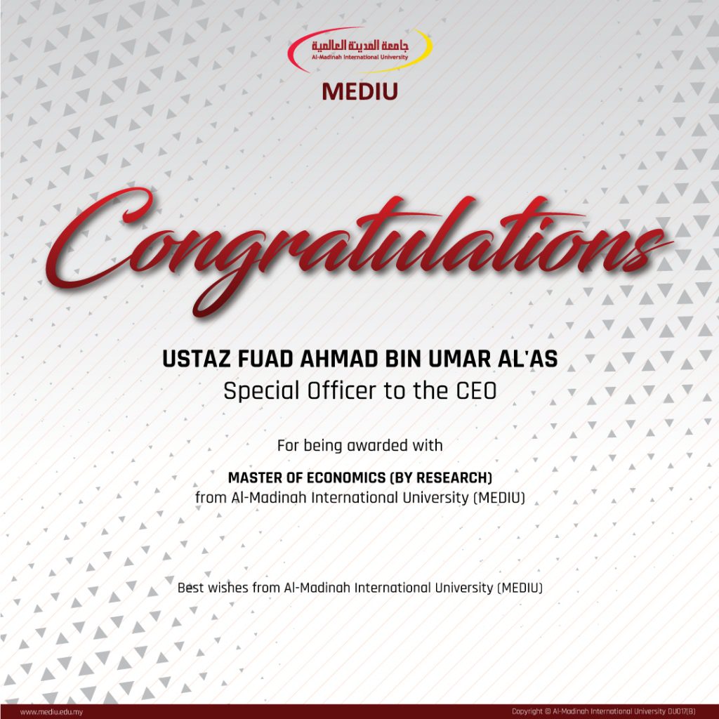 Staff Academic Achievement-Ustaz Fuad Ahmad bin Umar Al’As