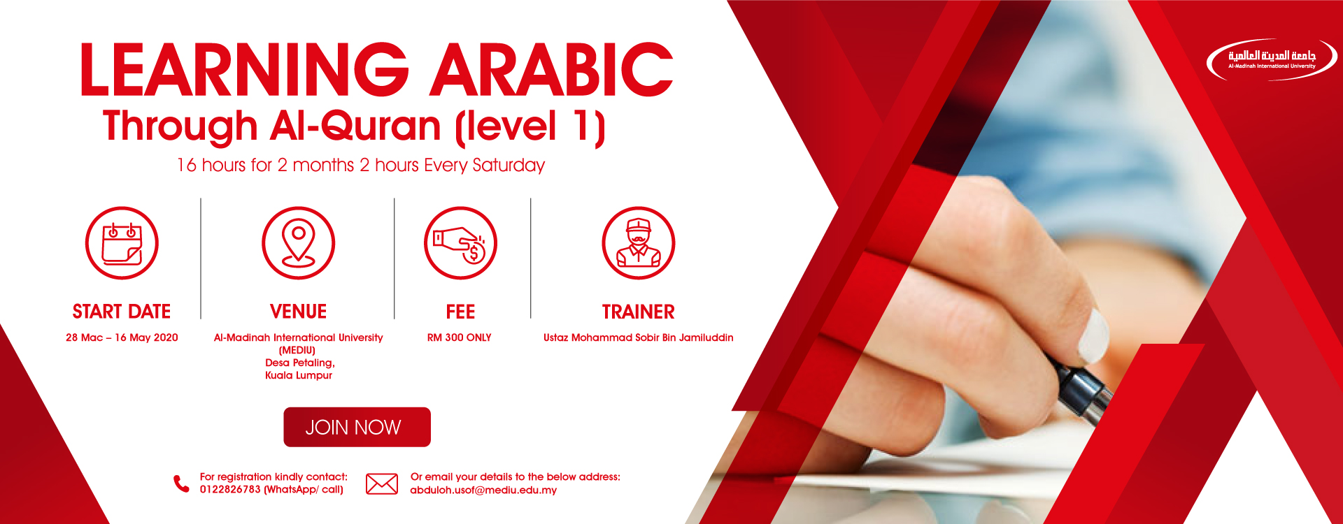 For registration kindly contact Asst. Prof. Dr. Abduloh Usof via: