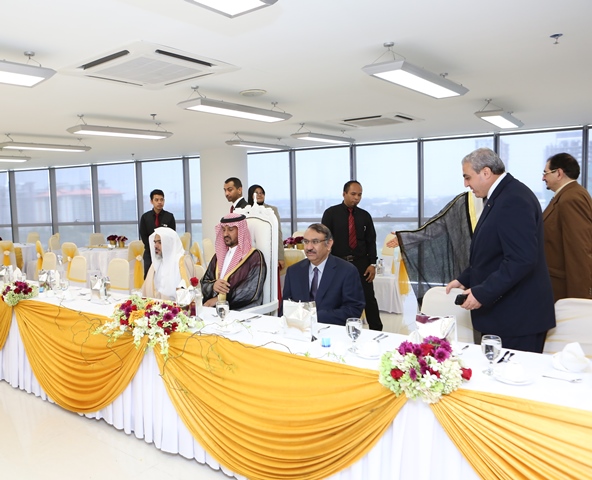 The delegation, led by Prince Dr. Bandar made an office tour to view the 14-storey building facilities which can accommodate nearly 4000 students at a time including the library, lecture halls and classrooms, multi-purpose auditorium, meeting rooms, computer labs and office workspace. CEO feels it is a great honor for Prince Dr.Bandar to celebrate the opening of the new building of the university at the same time reflects his determination and strong support to the development of the university administration.