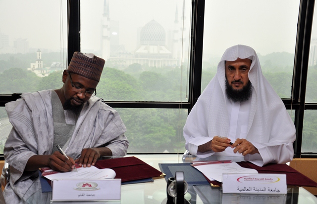 The university has step forward in extending bridges of cooperation and moving ahead towards achieving its objective and vision, as well to be in connection with international university by signing a memorandum with Al-Qalam University, Katsina. The session was signed between Prof. Dr. Mohammad Khalifa Al-Tamimi and Dr. Muhammad Muslim Ibrahim. The MoU between the two to collaborate efforts to establish and develop academic exchange and co-operation in teaching, training, research and development in the activities among others to promote exchange of online learning technologies, to exchange of information and materials of mutual interest, to promote and facilitate the exchange of research, teaching staff as well as students and others.