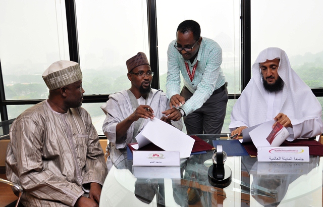 Al-Madinah International University (MEDIU) received an honored guest from Al-Qalam University, Katsina in Nigeria on Thursday, 1 October 2015. The delegation was led by Deputy Vice-Chancellor, Dr. Muhammad Muslim Ibrahim and was welcomed by MEDIU’s Honorable CEO; Prof. Dr. Mohammad Khalifa Al-Tamimi along with Deputy CEO R&D; Assoc. Prof. Dr. AB Rahim Ismail, Dean Faculty of Languages; Assoc. Prof.Dr Daud Abdul Quadir Elega and Head of Fiqh and Usul Fiqh Department; Asst. Prof. Dr. Umar Aliyu Abubakar.