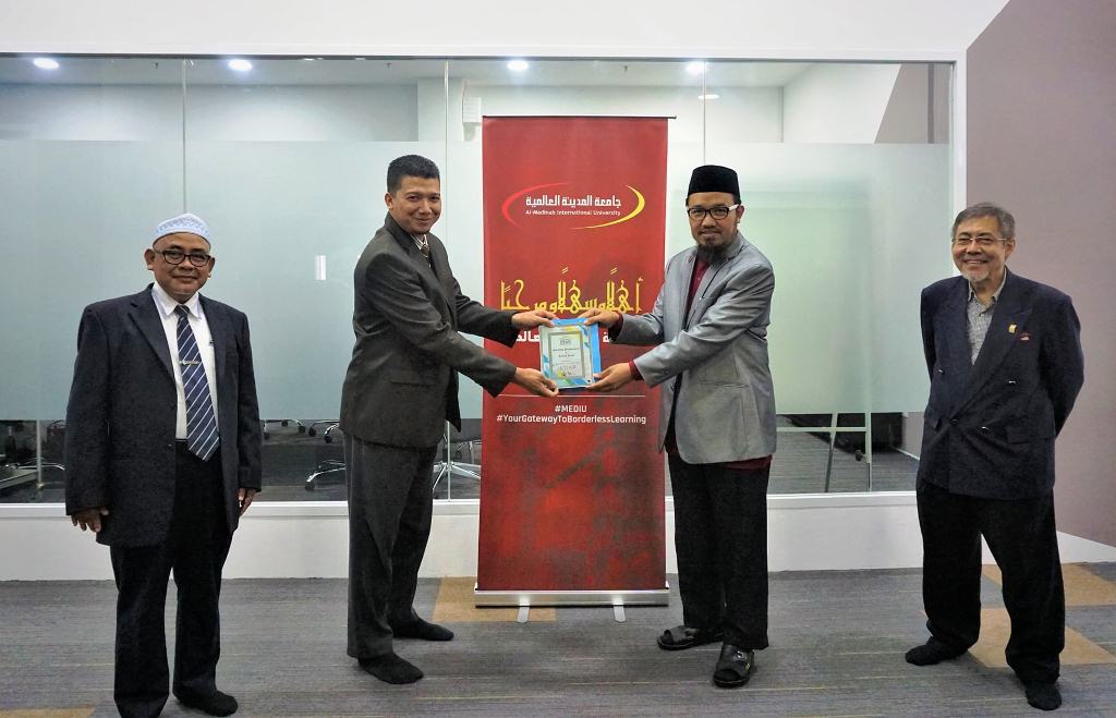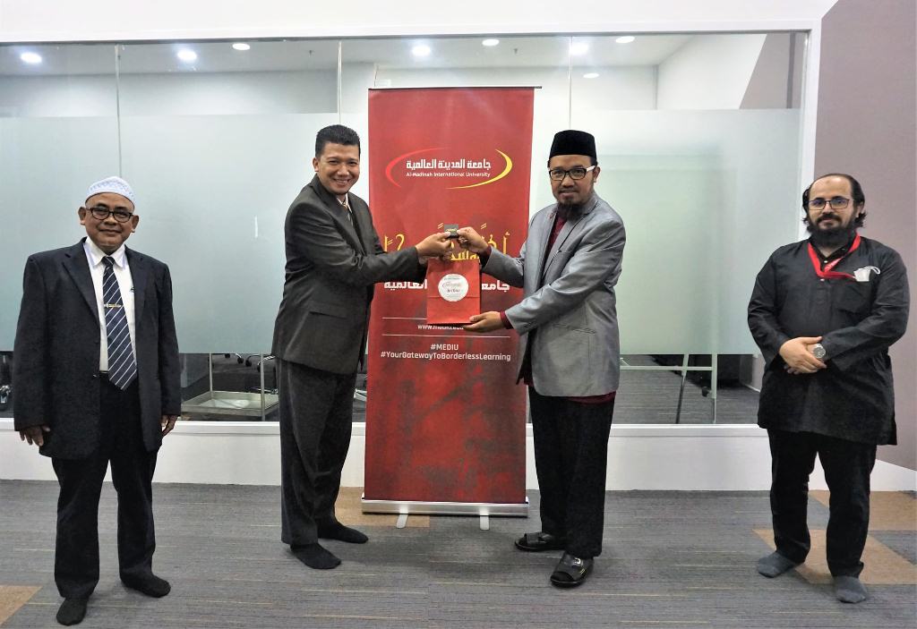 The honored visitors were greeted by MEDIU representatives namely Assoc. Prof. Dr. Tayeb Mebrouki, Acting Deputy CEO(Academic Affairs Division) Tuan Syed Hashim Bin Ahmad Al-Qudsi, Legal Adviser; En. Zainul Azhan Ahmad Bashir, Chief Technology Officer; Mrs. Nurul Ashikin Abdul Latiff, Registrar and Mr. Ahmad Sabri bin Jinlapudin, Chief Financial Officer.