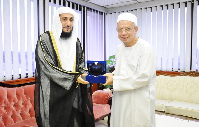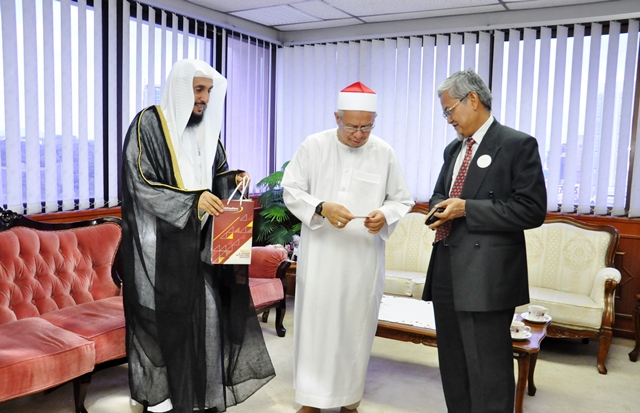 The visit aims to discuss ways to develop relations between the two parties as a step to strengthen potential cooperation towards building development in the Islamic educational areas. Prof. Dr. Mohammad Khalifa Al-Tamimi expressed his gladness of visiting Sahibus Samahah Datuk Dr Zulkifli Mohamad Al-Bakri and briefed him on the university’s history and achievements and took the opportunity by inviting Honorable Mufti Wilayah Persekutuan to visit the university.